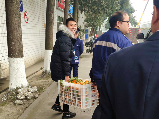 義賣現(xiàn)場,一筐筐、一個(gè)個(gè)柑橘,如暖陽般格外醒目,給歲末年關(guān)的科工園區(qū),憑添了辭舊迎新的溫暖氣氛,來往行人紛紛駐足,品鑒甘甜滋味,挑選鐘意果實(shí)。半天時(shí)間里1500多斤柑橘就被搶購一空。