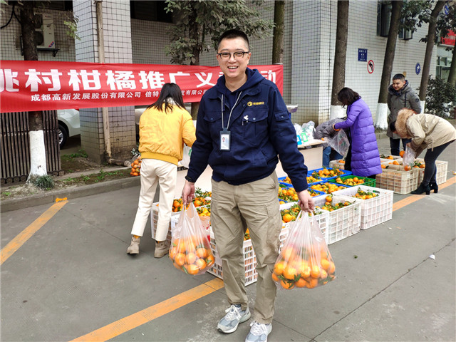2019年簡陽核桃村憑借踏實(shí)肯干和悉心栽培,提升了柑橘產(chǎn)量和果品,滿樹的果實(shí)帶來豐收喜悅的同時(shí),也給村民們帶來“最后一公里”的銷售問題。高新發(fā)聚焦精準(zhǔn)扶貧工作,通過“消費(fèi)扶貧,以購代扶”幫扶形式,不但解決了村民農(nóng)產(chǎn)品銷路窄問題,打通貧困戶與市場“最后一公里路”,將捐贈(zèng)式“輸血”轉(zhuǎn)變?yōu)榉龀质健霸煅?,讓幫扶對象切?shí)得到收益,有效調(diào)動(dòng)勞動(dòng)致富積極性,激發(fā)村民用勤勞智慧創(chuàng)造美好生活。