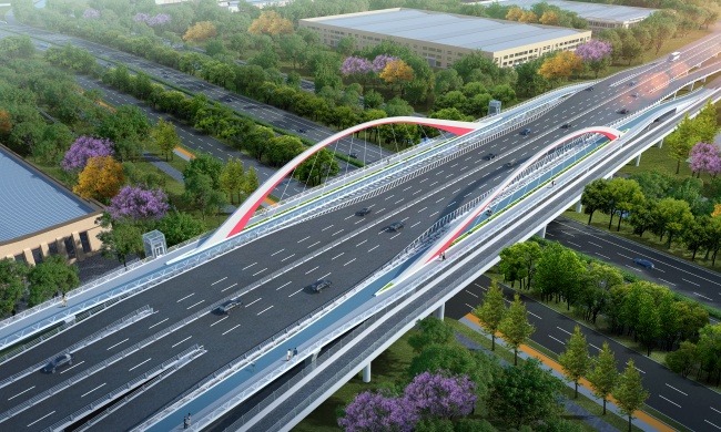 空港園林?jǐn)y手中鐵二十三局承建天健路長(zhǎng)跨線橋正式通車(chē)
